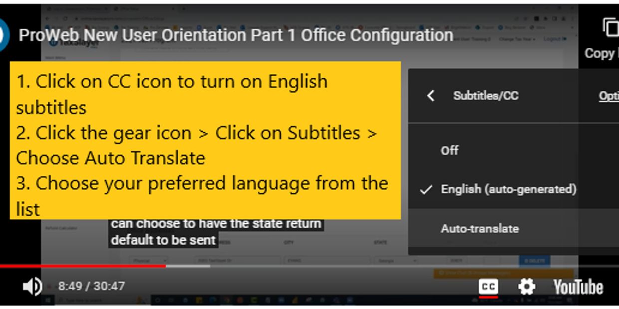 To view the videos with Spanish or other language subtitles, follow the steps on the graphic below. You will need to repeat the steps on each video: